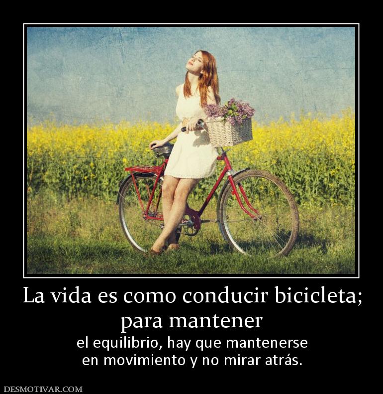 Frases de la vida en bicicleta. La vida es como andar en bicicleta te caes solo si dejas de pedalear. Ambas mueven a las personas hacia adelante sin desperdiciar nada. Pero para aquellos que no hayan experimentado aún la experiencia divertida enriquecedora y emocionante de andar en bicicleta les traigo frases e ideas que escuché por ahí o leí no recuerdo dónde. El día 19 de abril se celebra el día mundial de la bicicleta.