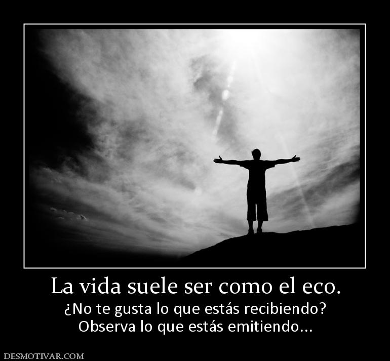 Frases sobre el eco de la vida. Umberto eco 1932 2016 fue un novelista crítico literario filósofo y profesor universitario de origen italiano. El eco de la vida reflexiones de vida la mayor parte de los humanos en la vida vamos por éste mundo pensando que todo lo merecemos pidiendo y exigiendo lo que no damos ni estamos dispuestos a dar. Te contaré una la historia de un niño y su papá que un día decidieron salir de paseo a caminar por las montañas mientras caminaban el niño tropezó cayó y se golpeó tan fuerte que grito ahhhh. En la mitología griega eco era una ninfa que sólo podía repetir las últimas palabras de los demás.